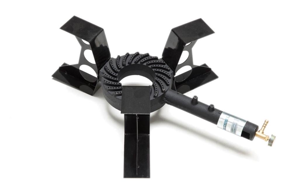موقد غاز محمول مصنع من الحديد الزهر المتين والقوي، ويأتي بتصميم مثلث عصري وعملي، يتكون من شعلة واحدة فائقة القوة، ومدعم بثلاث أرجل صلبة ومتينة تبقيه ثابتًا أثناء الاستخدام، وعلاوة على ذلك يتمتع بجوانب قوية تتحمل الأوزان، ليناسب أواني الطهي الكبيرة والطهي في الهواء الطلق.